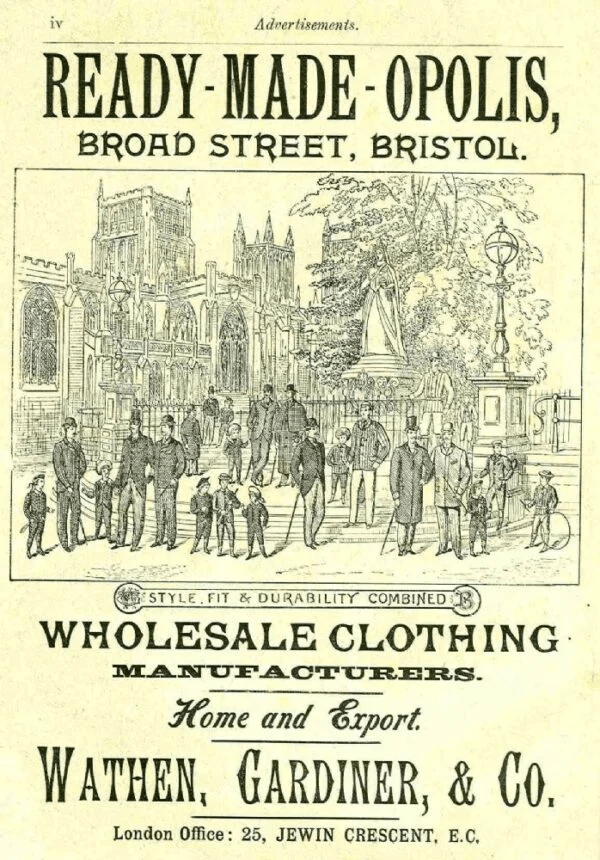 Thornley married Elizabeth Wathen (1839-1905) at St Barnabas in 1864. Her father is listed as having been a retired victualler, and by the time of marriage simply a “gentlemen” but it is reasonable to assume a connection with the clothing industry given the Wathen name. Elizabeth’s brother, Sir Charles Wathen, was a clothing entrepreneur who was six-times Mayor of Bristol, a Chairman of the Grateful Society and a Justice of the Peace.